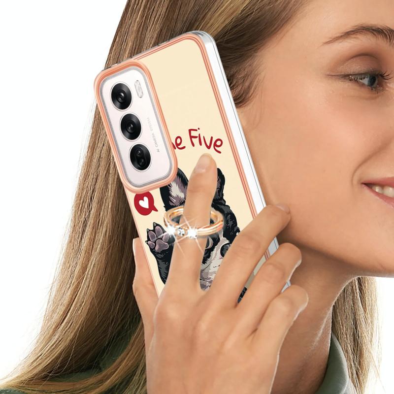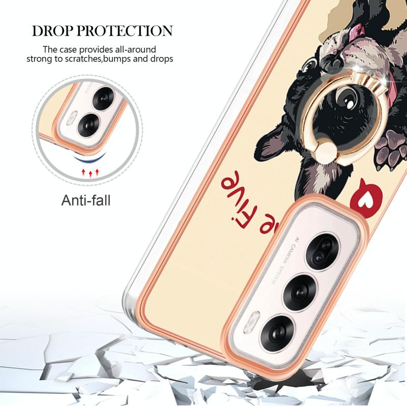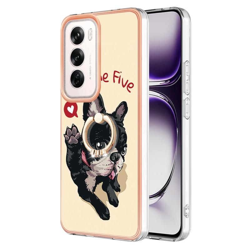 For OPPO Reno12 Global Electroplating Dual-side IMD Phone Case with Ring Holder(Lucky Dog)