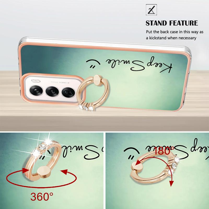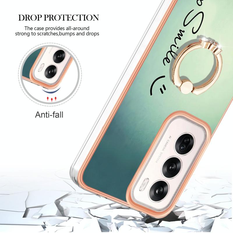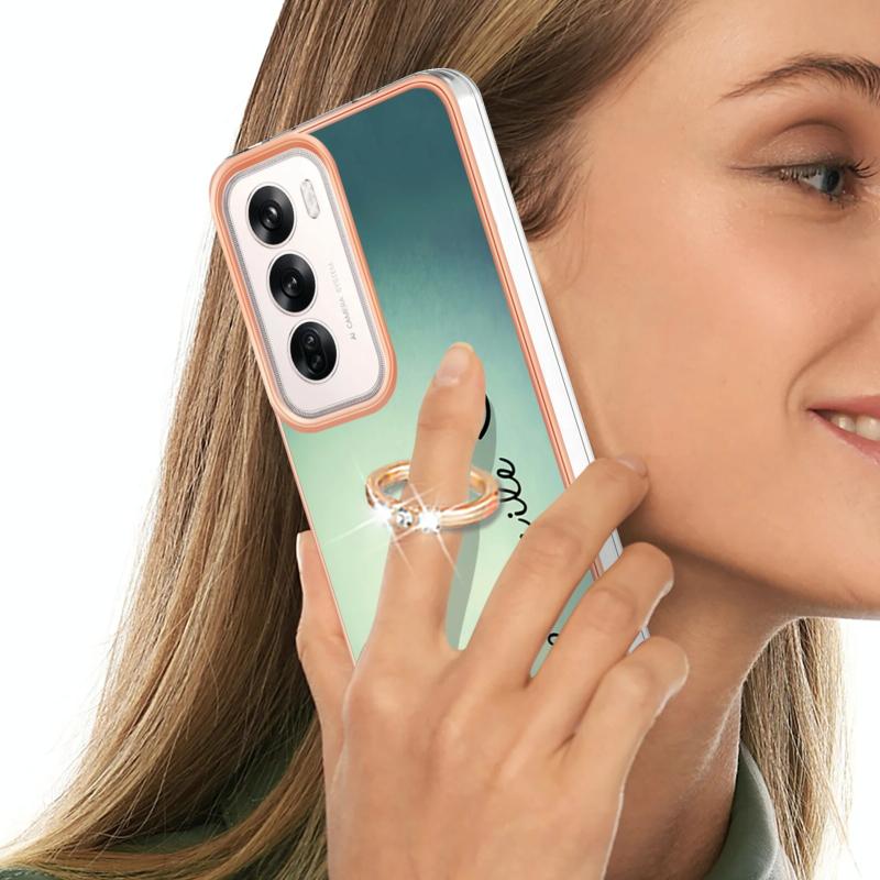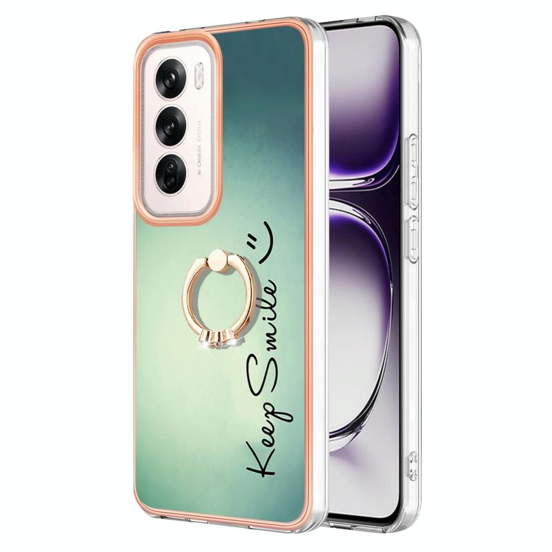 For OPPO Reno12 Global Electroplating Dual-side IMD Phone Case with Ring Holder(Smile)