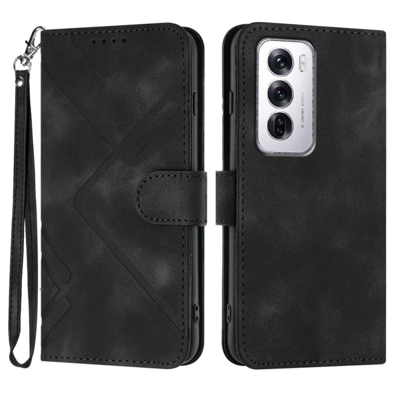 For OPPO Reno12 Global Line Pattern Skin Feel Leather Phone Case(Black)