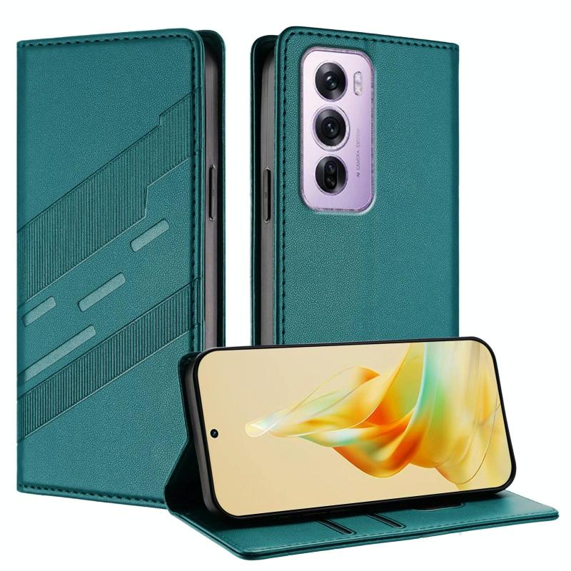 For OPPO Reno12 Pro 5G Embossed Multi-functional Wallet Retro Leather Phone Case(Dark Green)