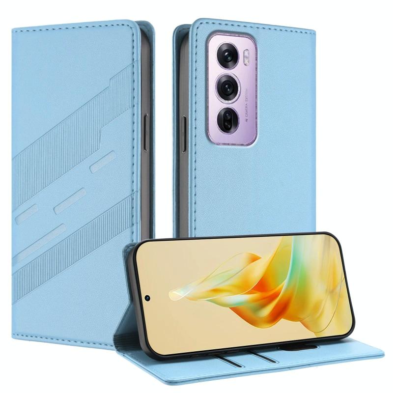 For OPPO Reno12 Pro 5G Embossed Multi-functional Wallet Retro Leather Phone Case(Light Blue)