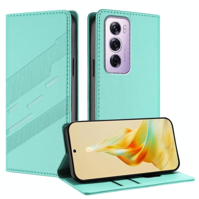 For OPPO Reno12 Pro 5G Embossed Multi-functional Wallet Retro Leather Phone Case(Mint Green)