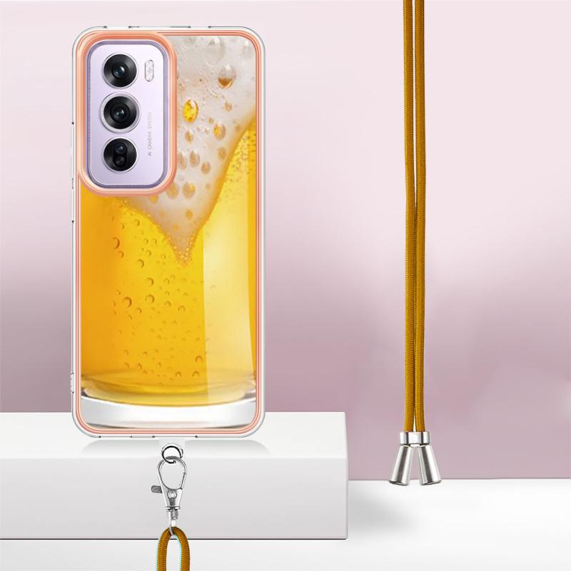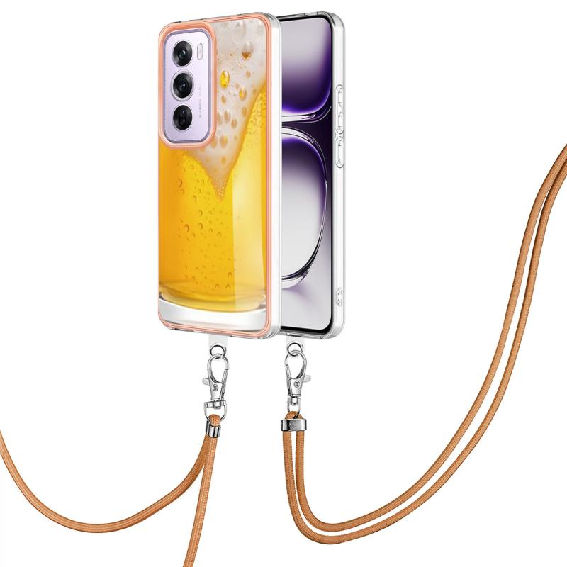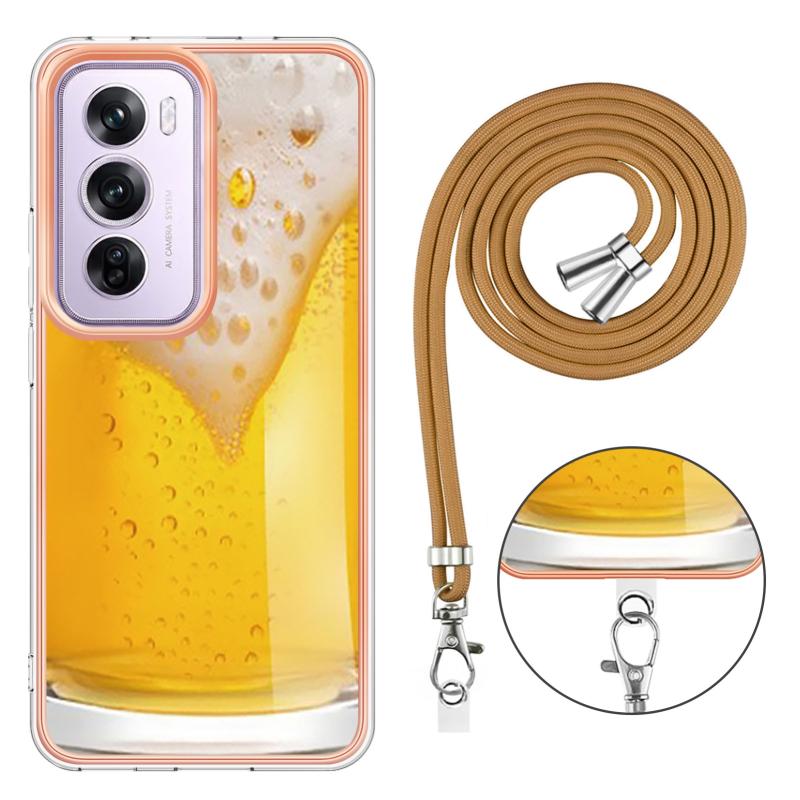 For OPPO Reno12 Pro Global Electroplating Dual-side IMD Phone Case with Lanyard(Draft Beer)