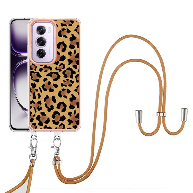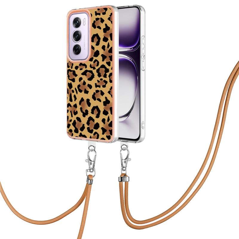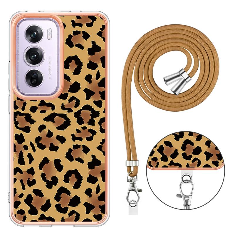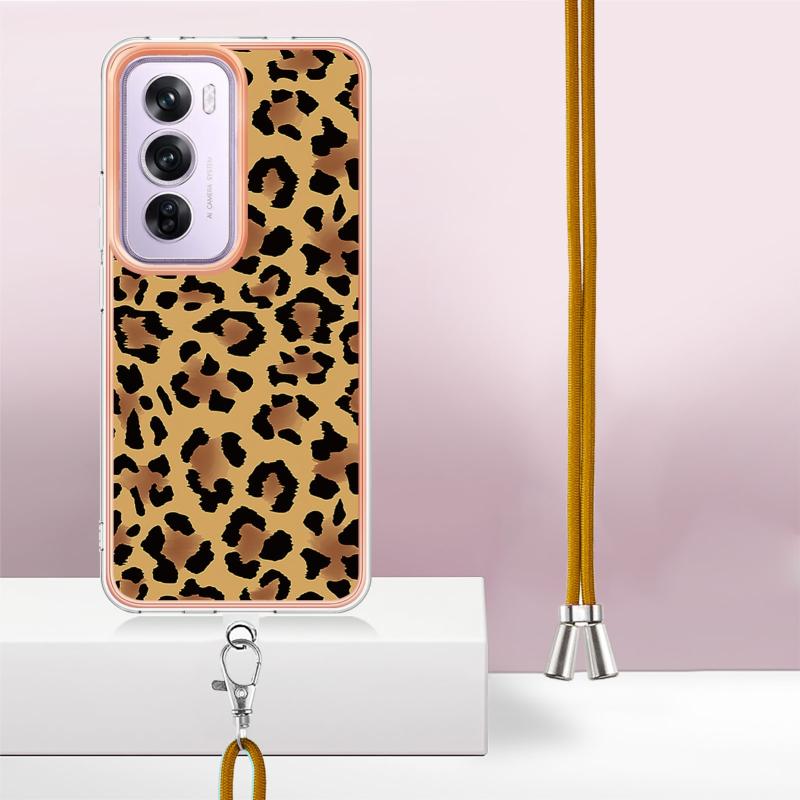 For OPPO Reno12 Pro Global Electroplating Dual-side IMD Phone Case with Lanyard(Leopard Print)