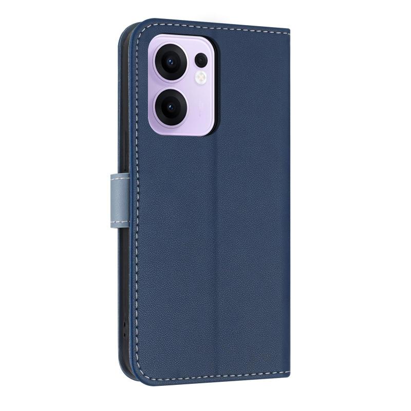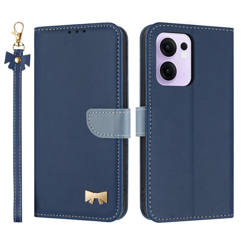 For OPPO Reno13 F Global Metal Bow Leather Phone Case with Hand Strap(Dark Blue)