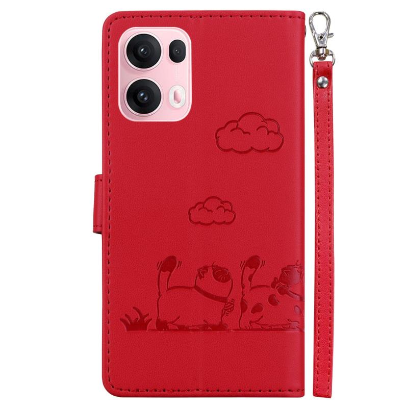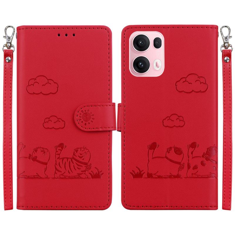 For OPPO Reno13 Pro Global Cute Cats RFID Leather Phone Case(Red)