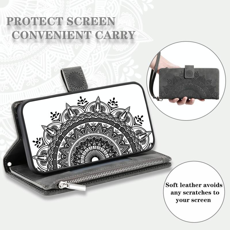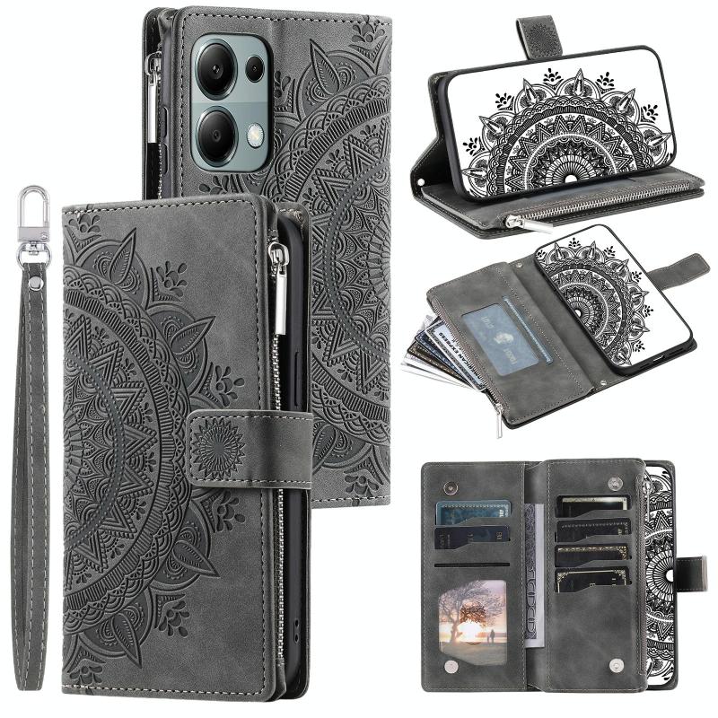 For OPPO Reno13 Pro Multi-Card Totem Zipper Leather Phone Case(Grey)
