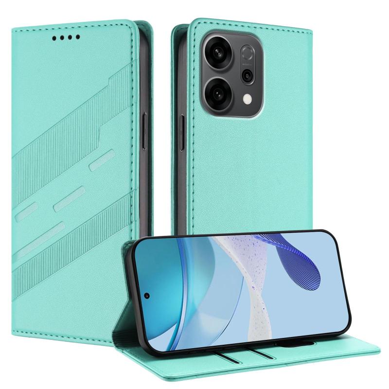 For OPPO Reno14 F 5G Embossed Multi-functional Wallet Retro Leather Phone Case(Mint Green)