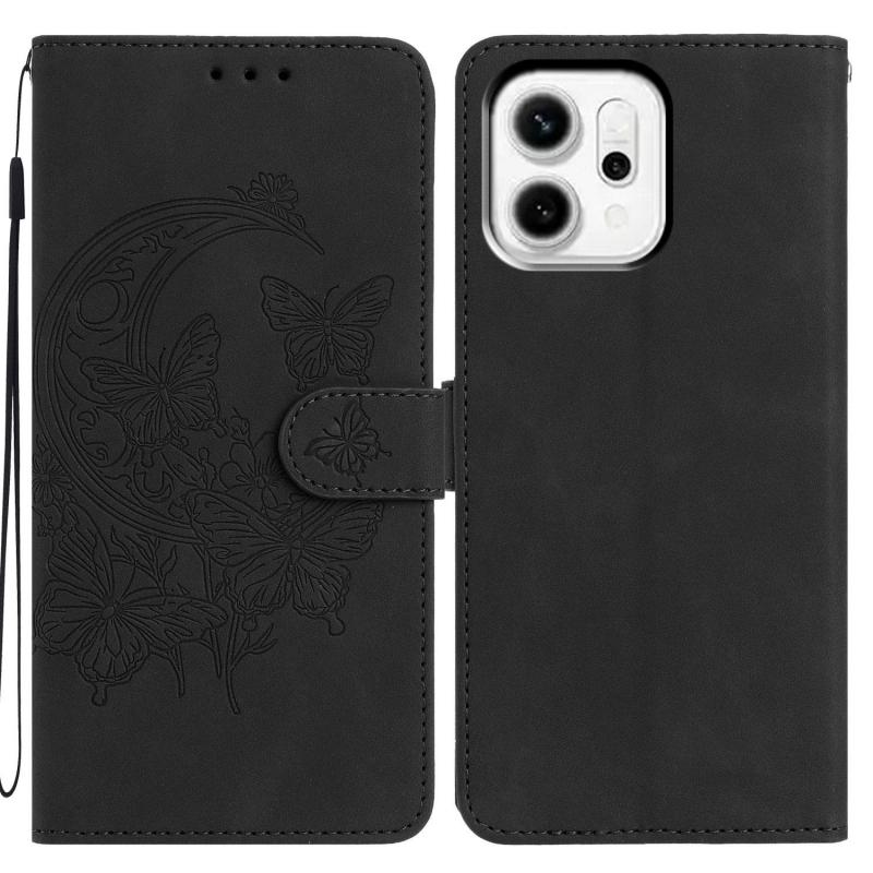 For OPPO Reno14 Pro 5G Global Moonlit Butterfly Dance Pattern Embossed Leather Phone Case(Black)