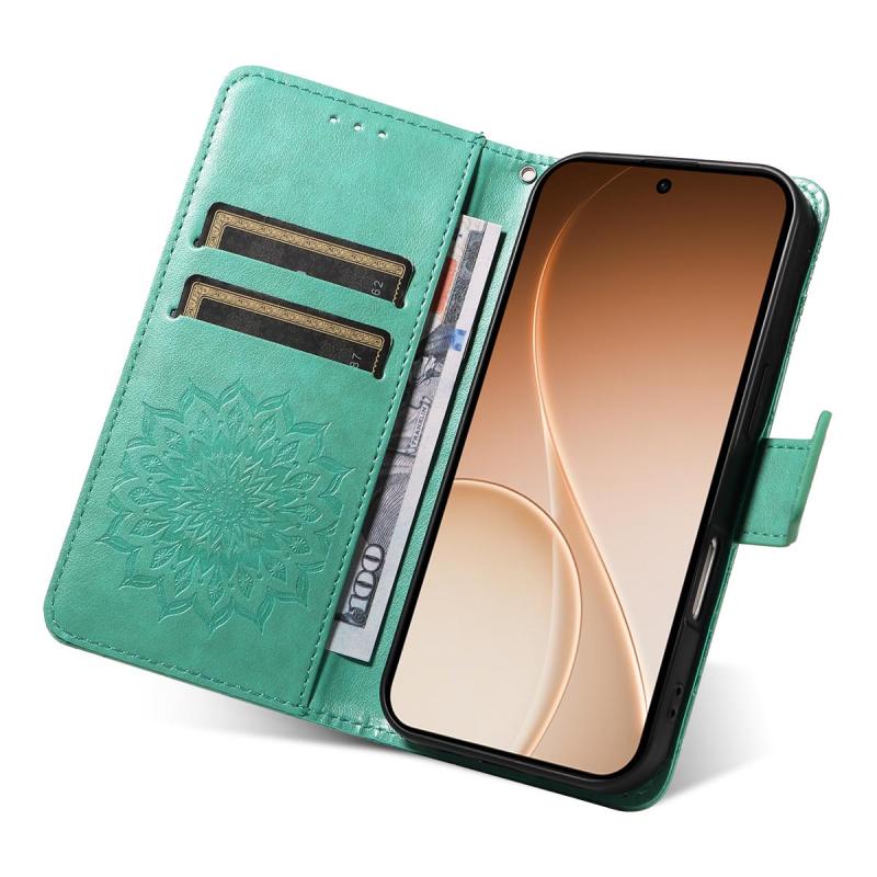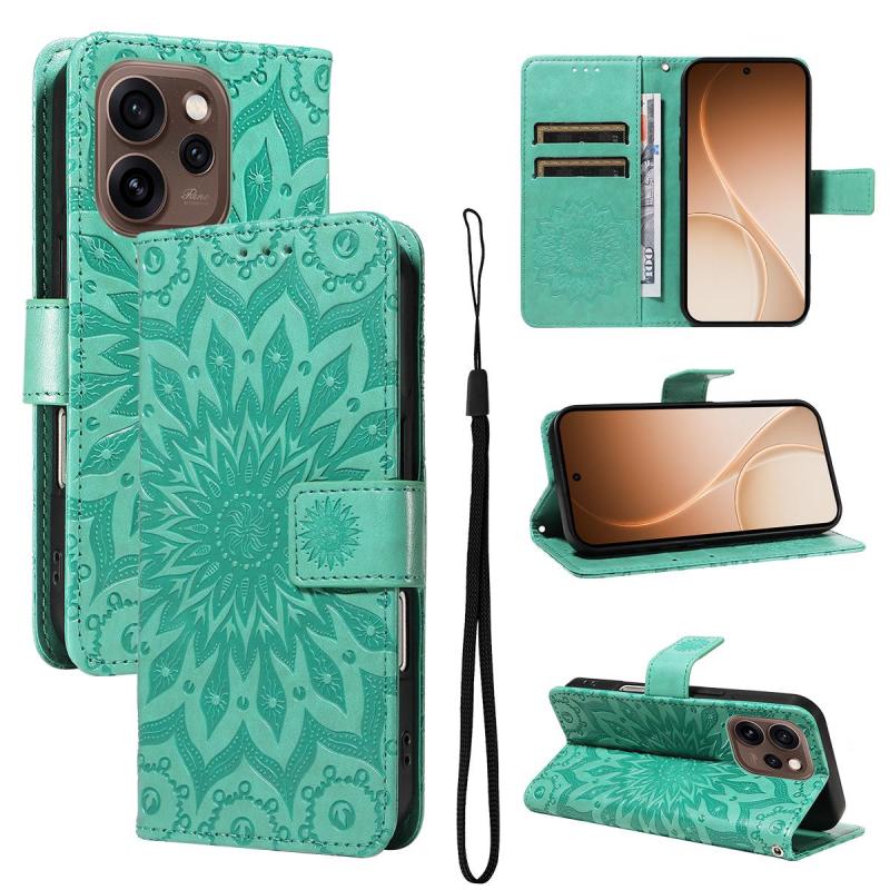 For OPPO Reno15 5G Global Embossed Sunflower Pattern Flip Leather Phone Case(Green)
