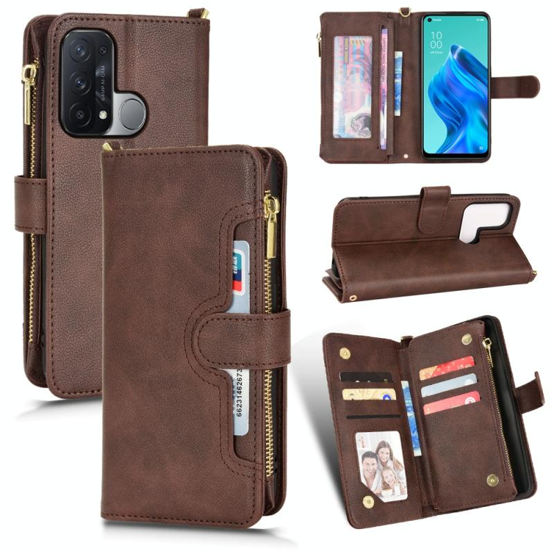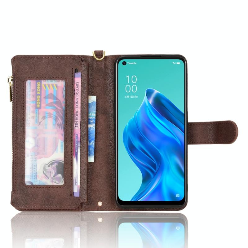 For OPPO Reno5 A Litchi Texture Zipper Leather Phone Case(Brown)