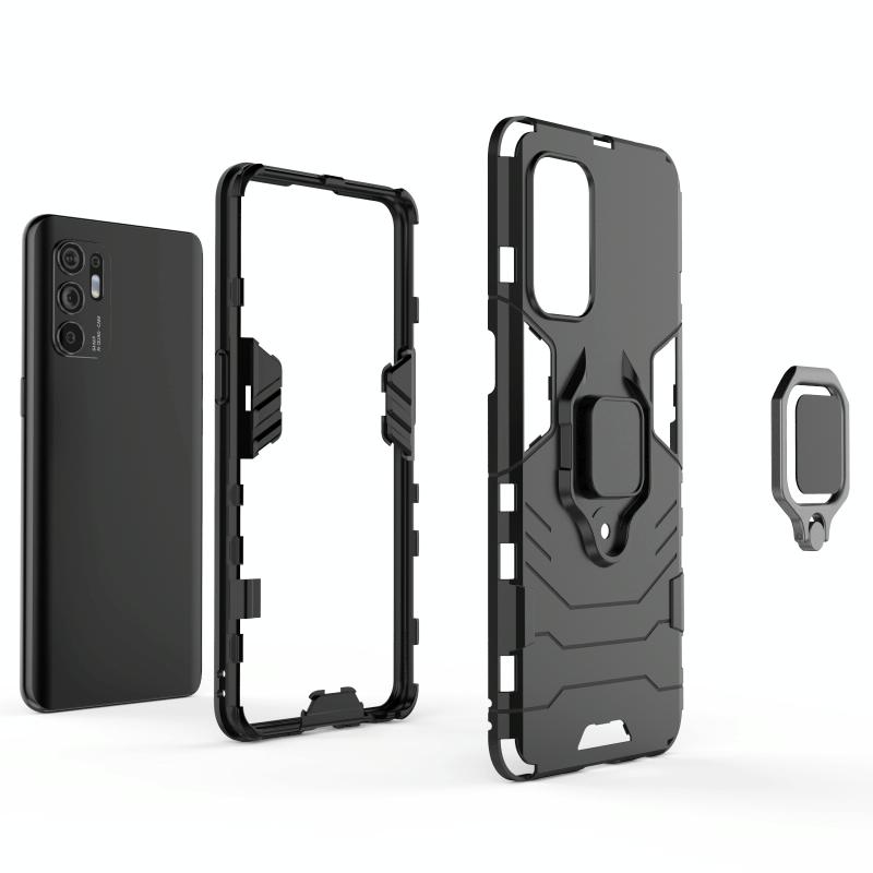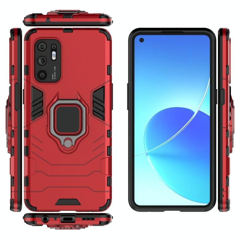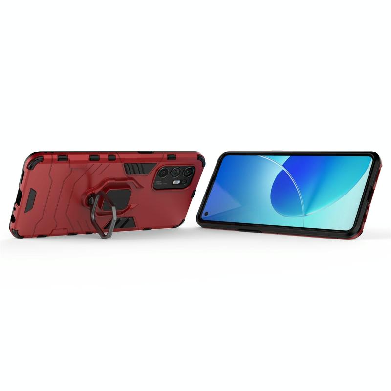 For OPPO Reno6 4G PC + TPU Shockproof Protective Case with Magnetic Ring Holder(Red)
