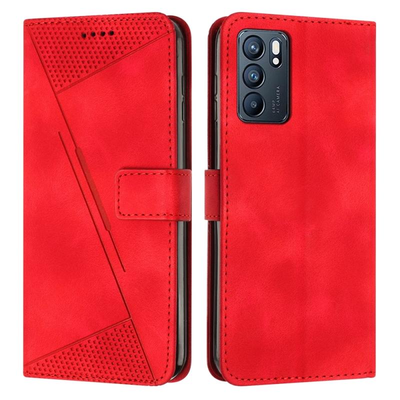 For OPPO Reno6 5G Dream Triangle Leather Phone Case with Lanyard(Red)