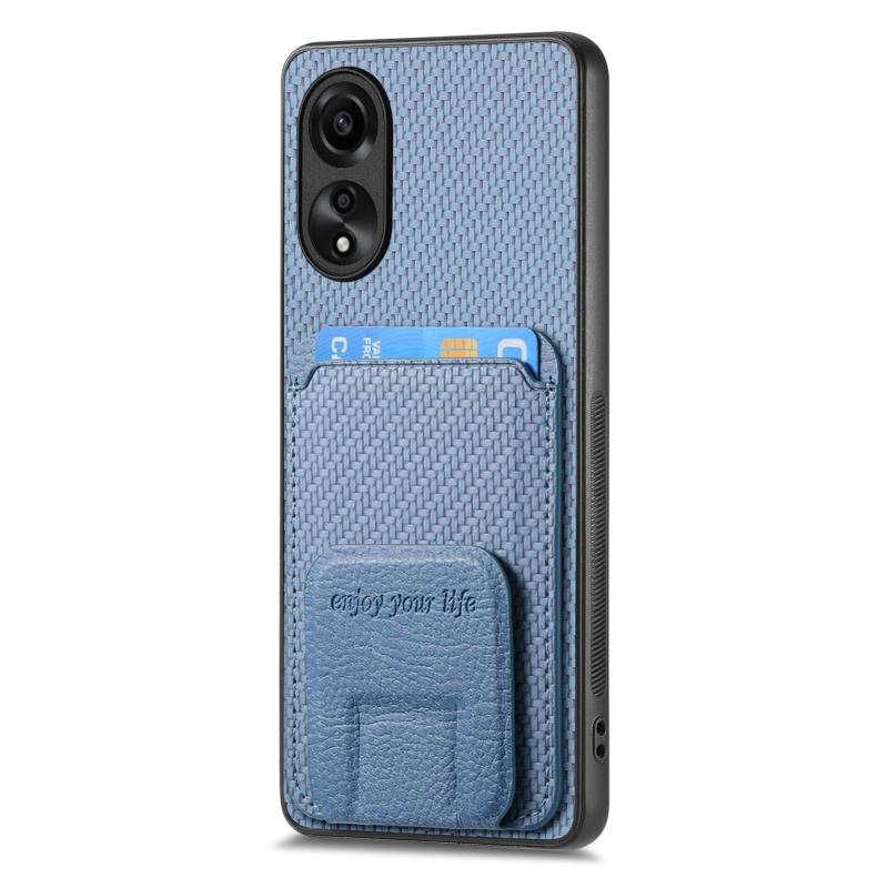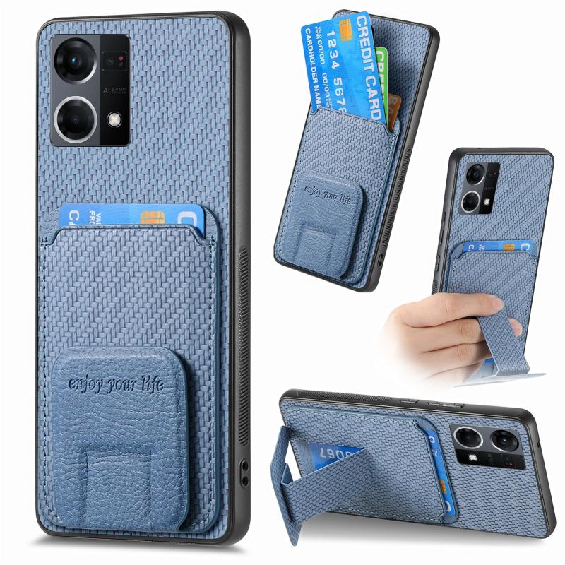 For OPPO Reno7 4G Carbon Fiber Card Bag Fold Stand Phone Case(Blue)