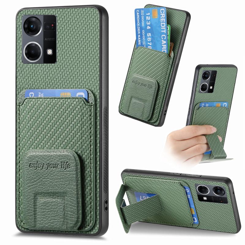 For OPPO Reno7 4G Carbon Fiber Card Bag Fold Stand Phone Case(Green)