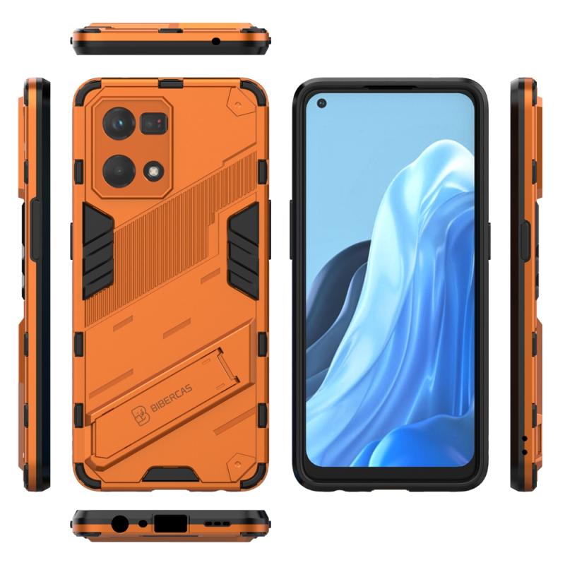 For OPPO Reno7 4G Punk Armor 2 in 1 PC + TPU Shockproof Phone Case with Invisible Holder(Orange)