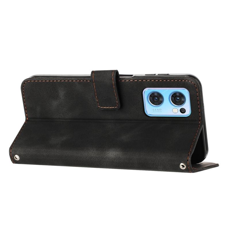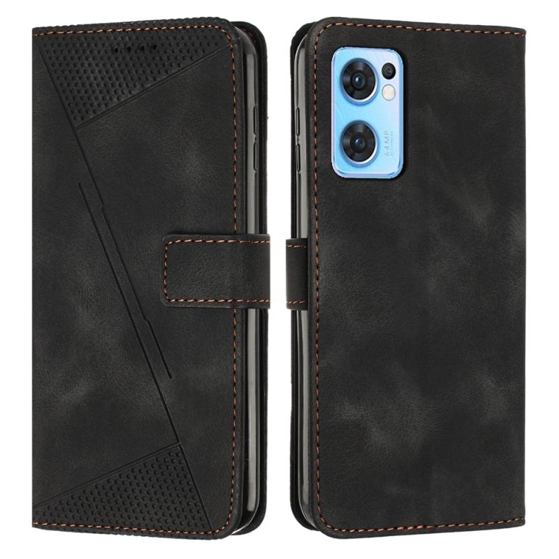 For OPPO Reno7 5G Dream Triangle Leather Phone Case with Lanyard(Black)