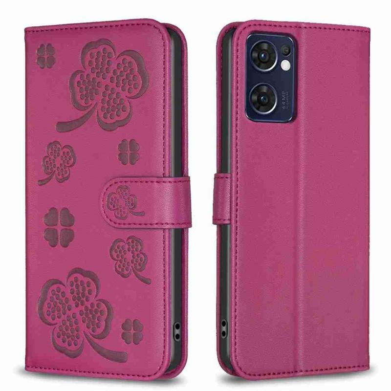 For OPPO Reno7 5G / Find X5 Lite Four-leaf Embossed Leather Phone Case(Rose Red)