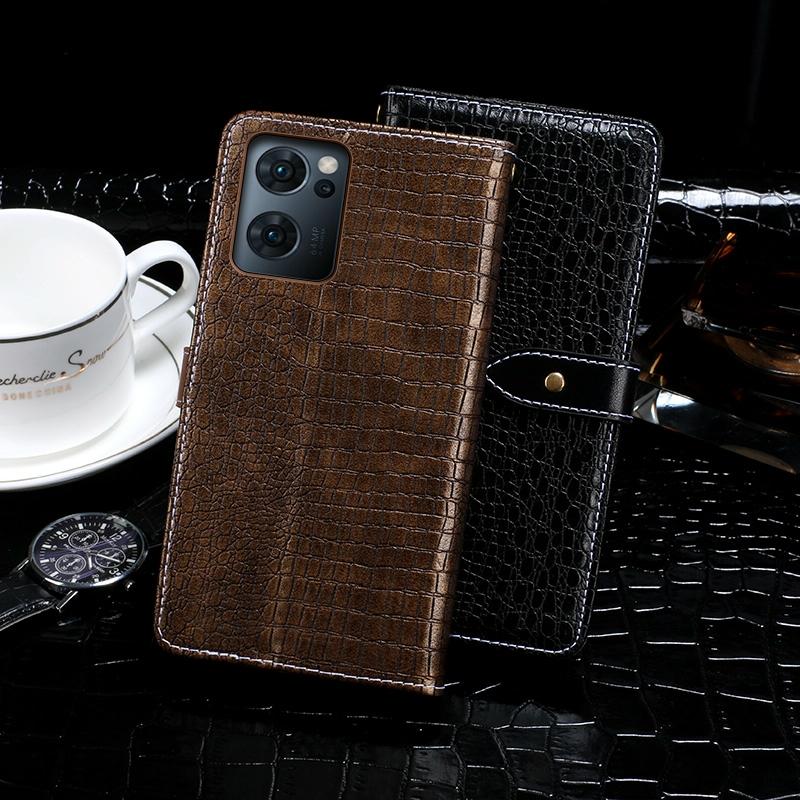 For OPPO Reno7 5G idewei Crocodile Texture Leather Phone Case(Dark Blue) (idewei)