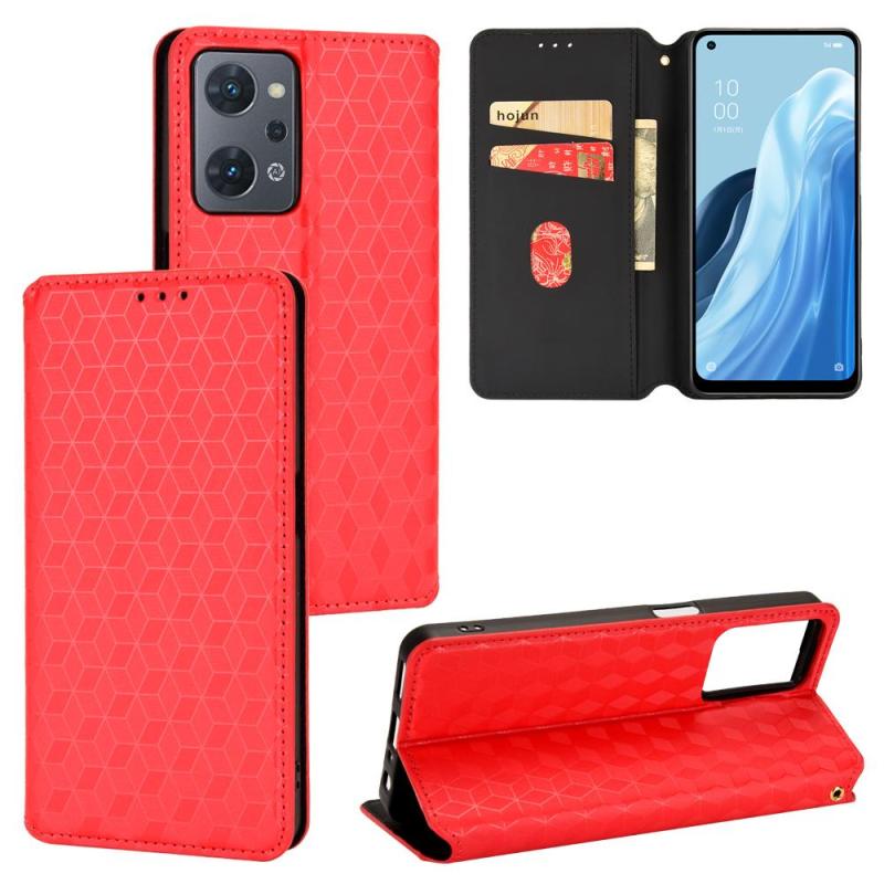 For OPPO Reno7 A Cubic Grid Texture Flip Leather Phone Case(Red)