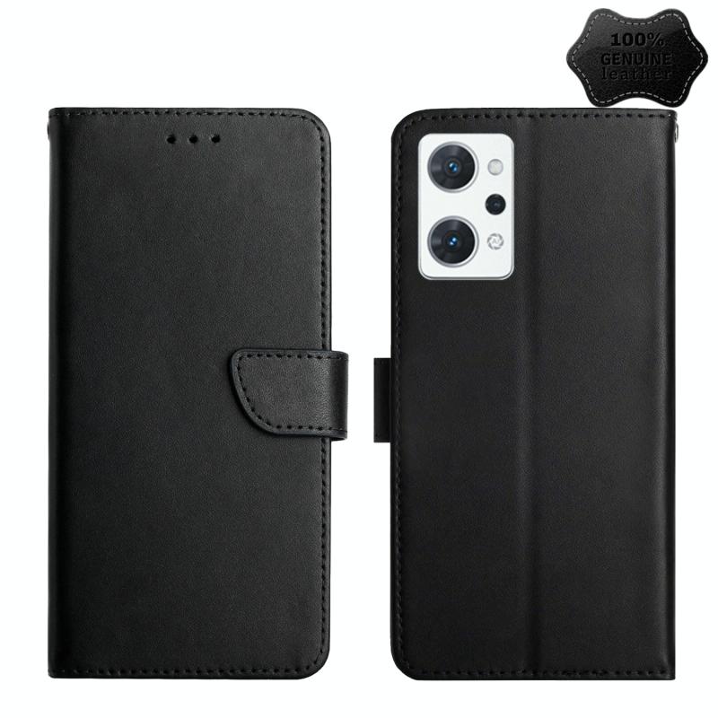 For OPPO Reno7 A Genuine Leather Fingerprint-proof Flip Phone Case(Black)