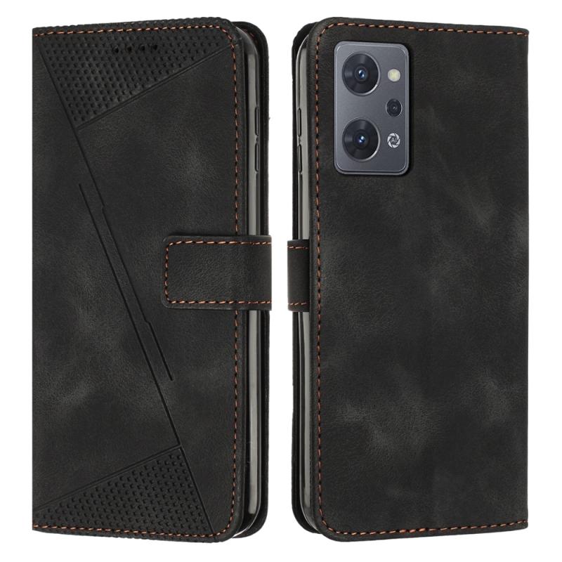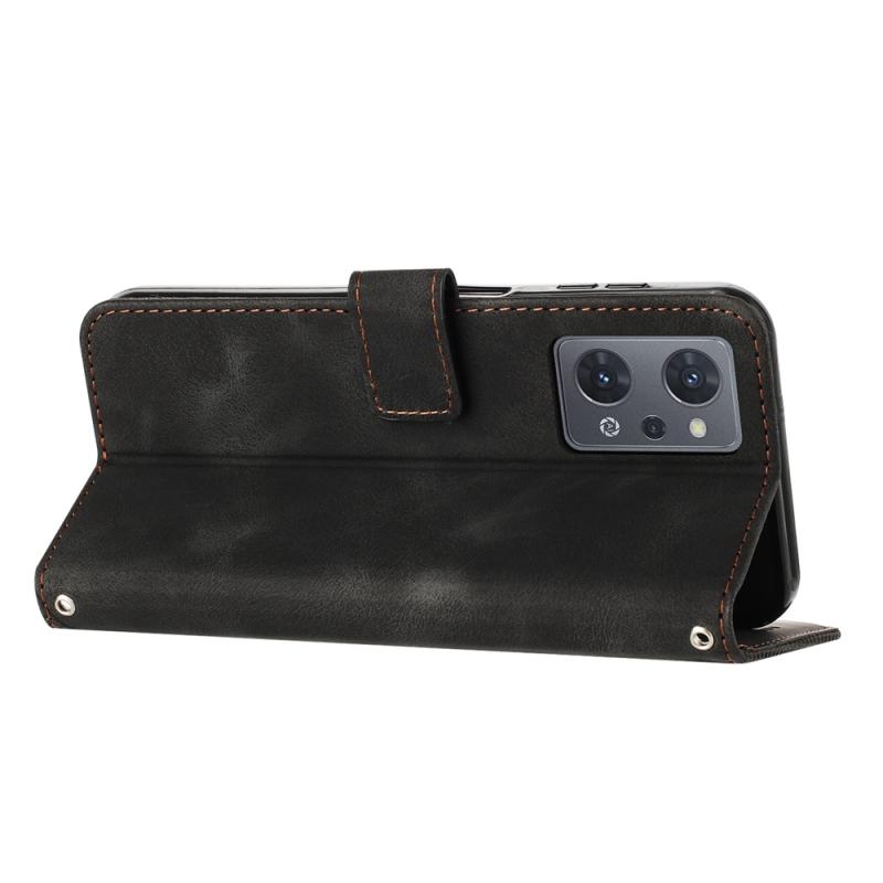 For OPPO Reno7 A JP Version Dream Triangle Leather Phone Case with Lanyard(Black)