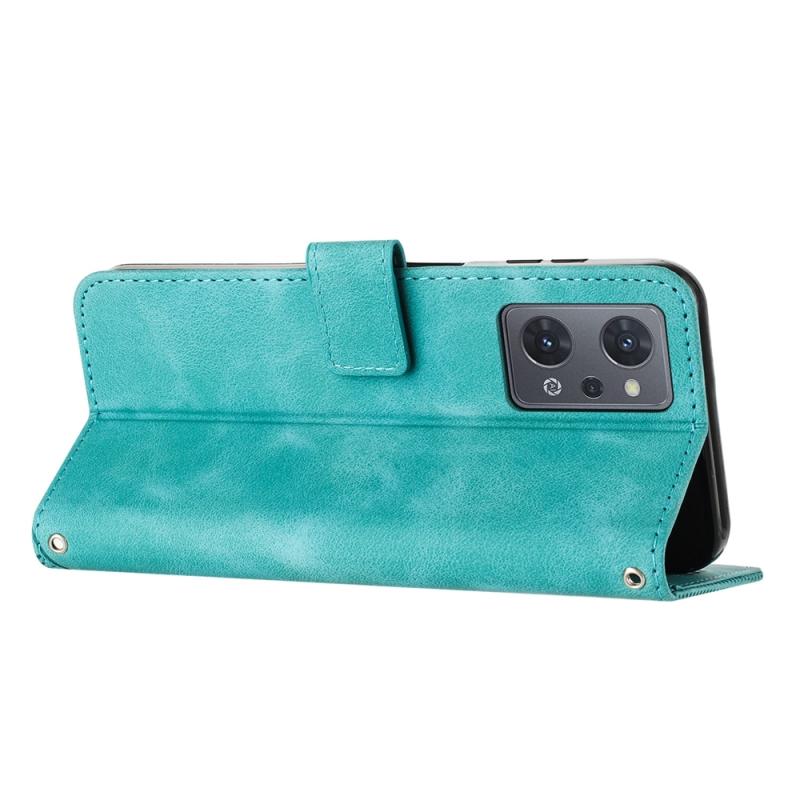 For OPPO Reno7 A JP Version Dream Triangle Leather Phone Case with Lanyard(Green)