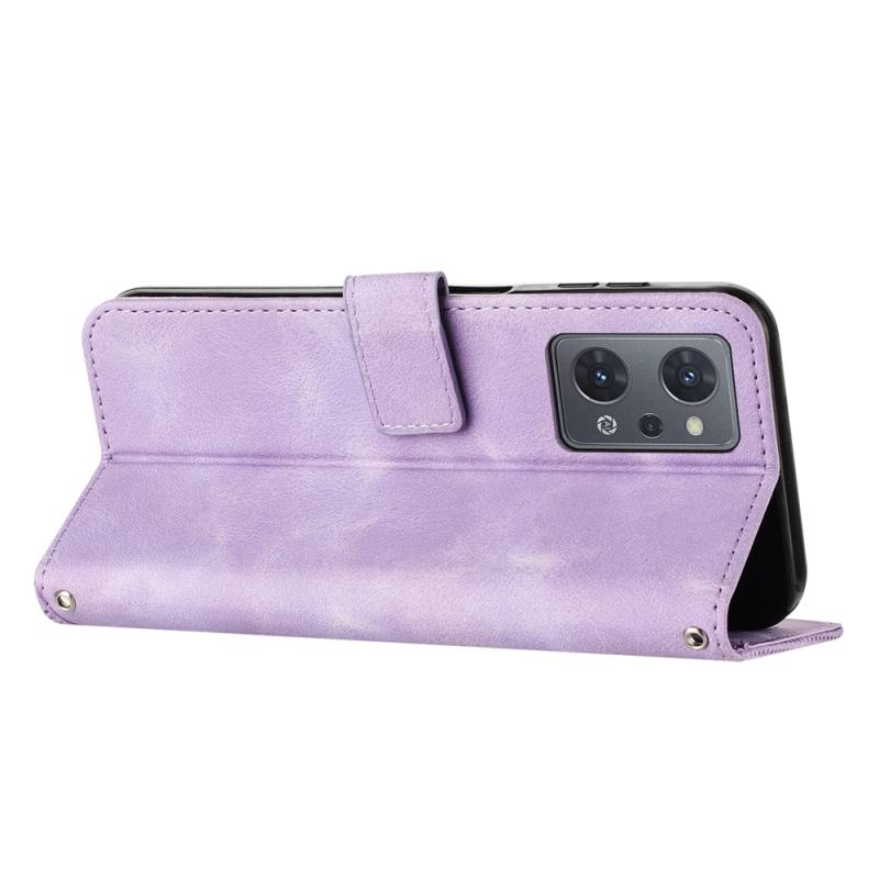 For OPPO Reno7 A JP Version Dream Triangle Leather Phone Case with Lanyard(Purple)
