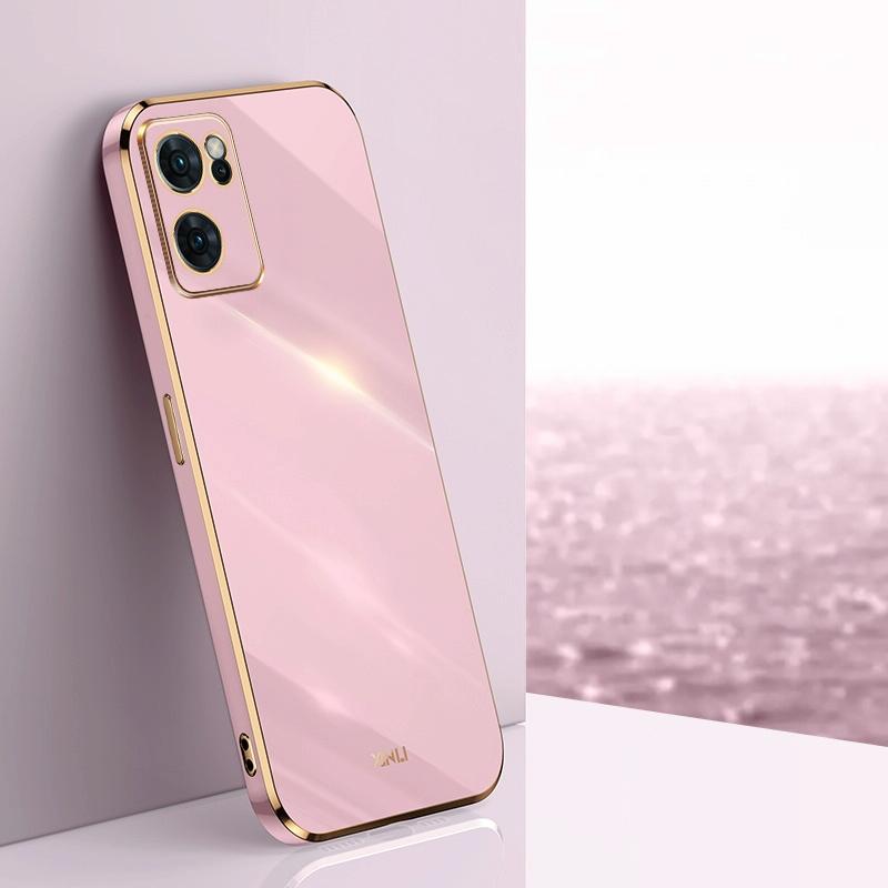 For OPPO Reno7 Global XINLI Straight Edge 6D Electroplate TPU Phone Case(Cherry Purple)