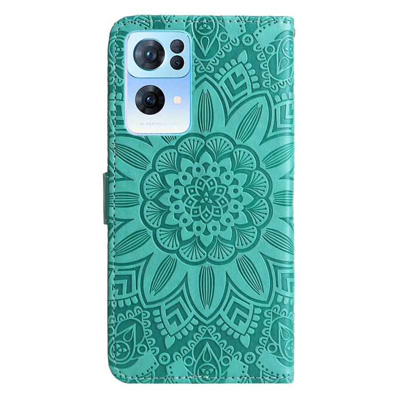 For OPPO Reno7 Pro 5G Embossed Sunflower Leather Phone Case(Green)