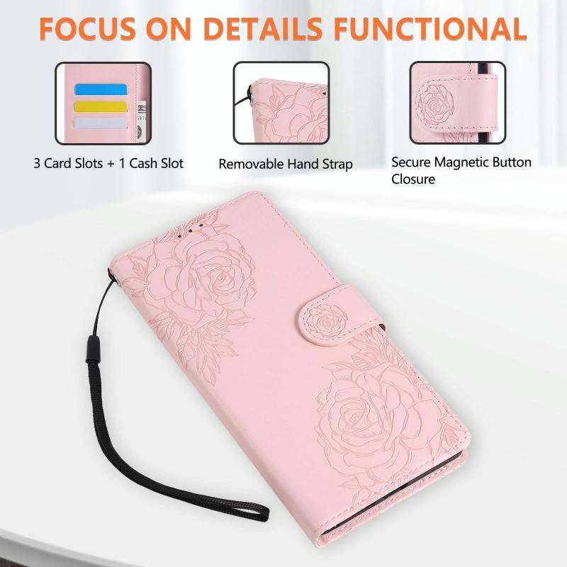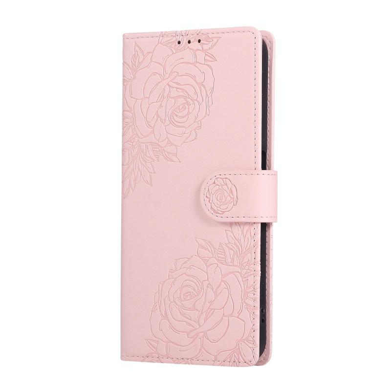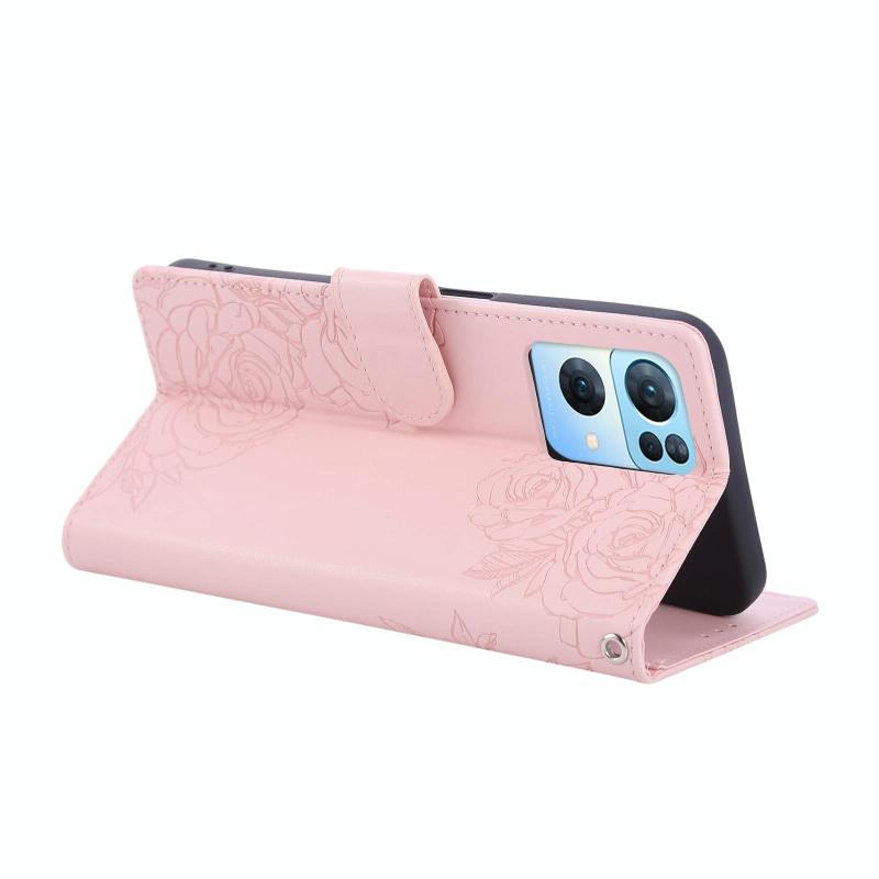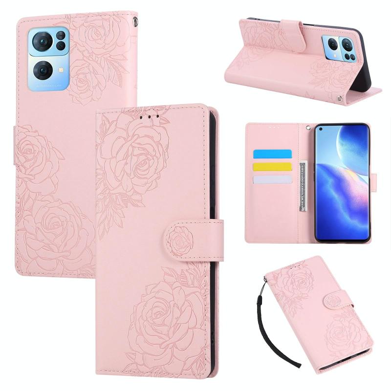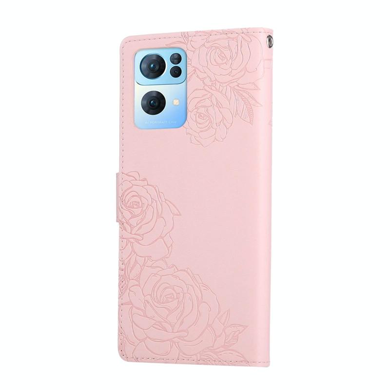 For OPPO Reno7 Pro 5G Rose Flower Embossed 3-Card Slots Leather Phone Case(Pink)
