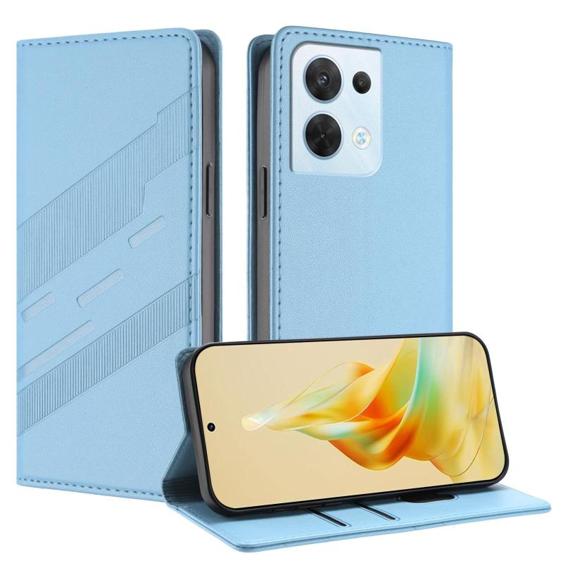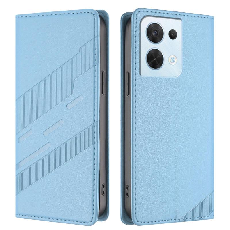 For OPPO Reno8 5G Embossed Multi-functional Wallet Retro Leather Phone Case(Light Blue)