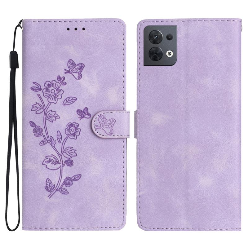 For OPPO Reno8 5G Flower Butterfly Embossing Pattern Leather Phone Case(Purple)
