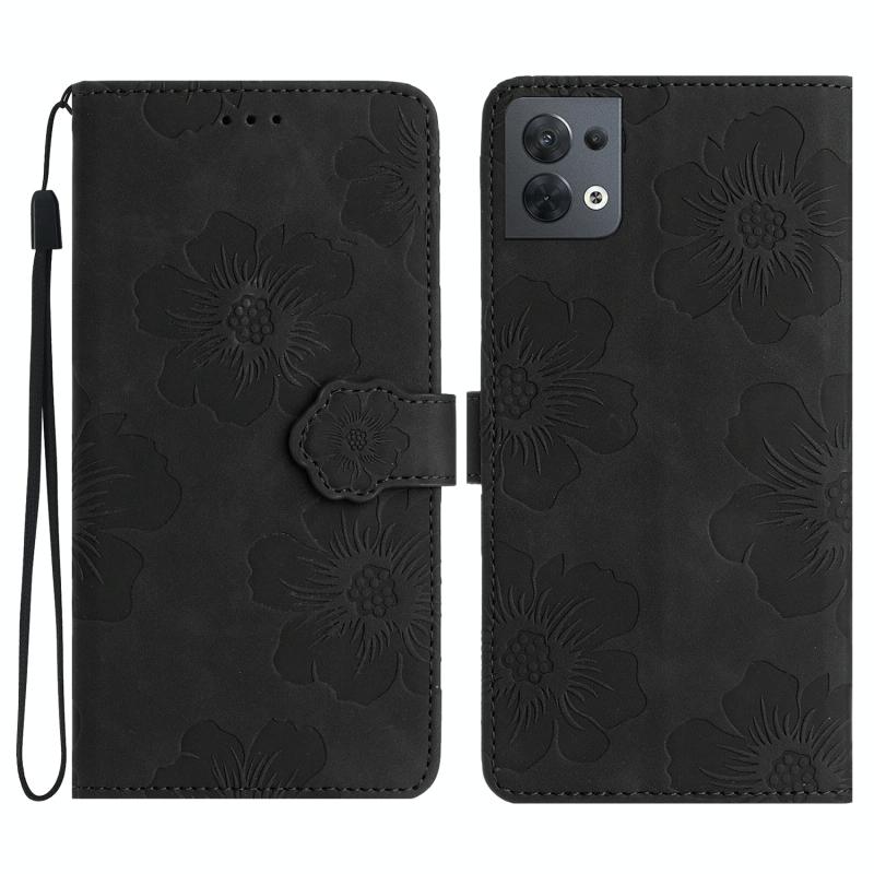 For OPPO Reno8 5G Flower Embossing Pattern Leather Phone Case(Black)