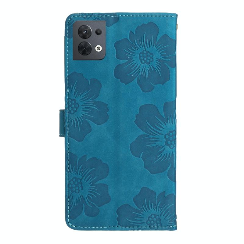 For OPPO Reno8 5G Flower Embossing Pattern Leather Phone Case(Blue)