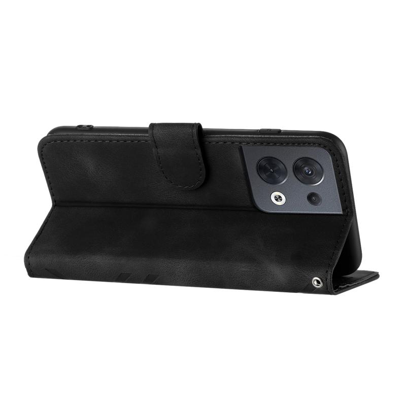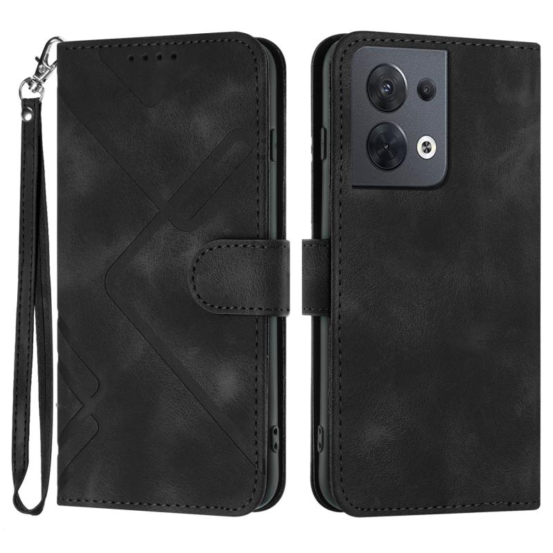 For OPPO Reno8 5G Line Pattern Skin Feel Leather Phone Case(Black)