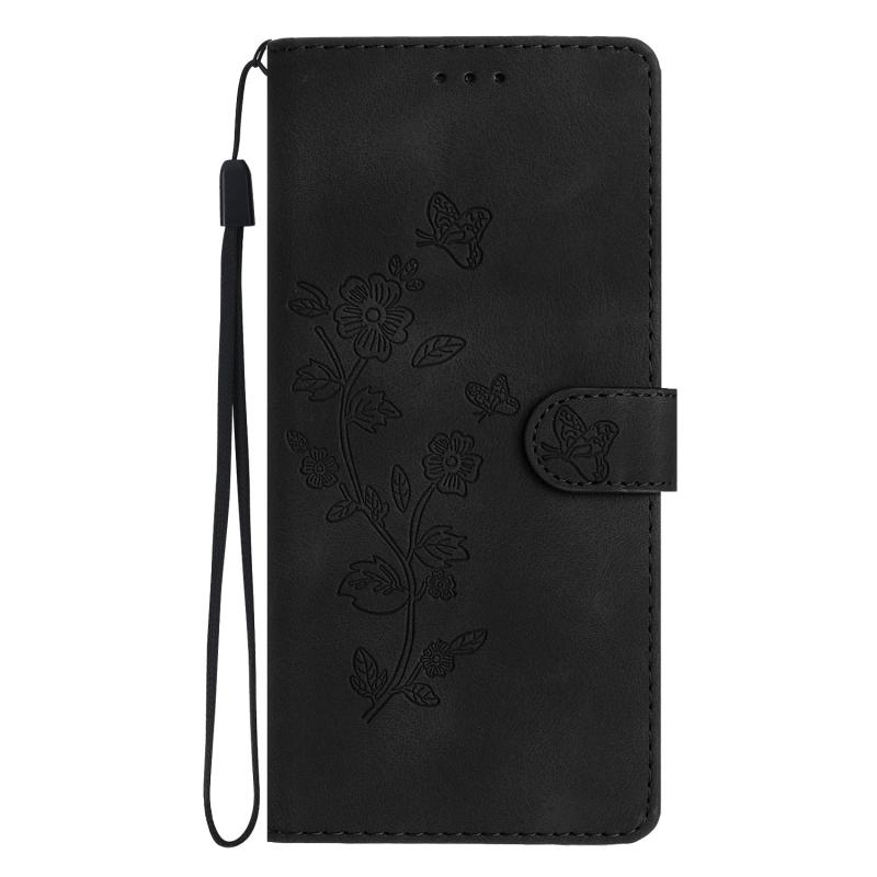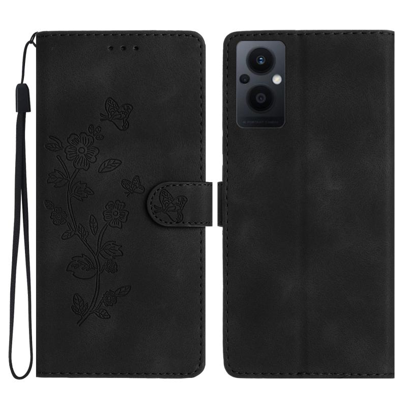 For OPPO Reno8 Lite 5G / Reno7 Z Flower Butterfly Embossing Pattern Leather Phone Case(Black)
