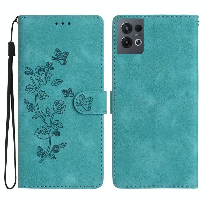 For OPPO Reno8 Pro 5G Flower Butterfly Embossing Pattern Leather Phone Case(Sky Blue)