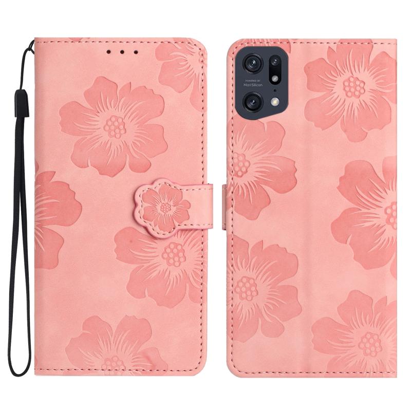 For OPPO Reno8 Pro 5G Flower Embossing Pattern Leather Phone Case(Pink)