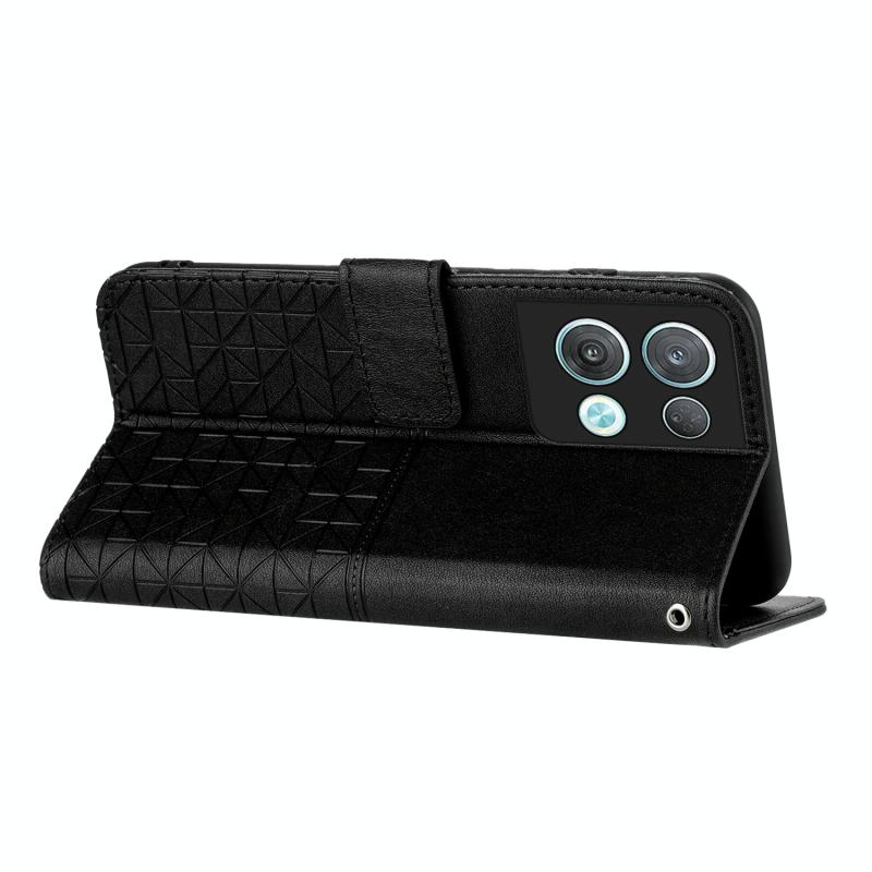 For OPPO Reno8 Pro Rhombic Texture Leather Phone Case with Lanyard(Black)