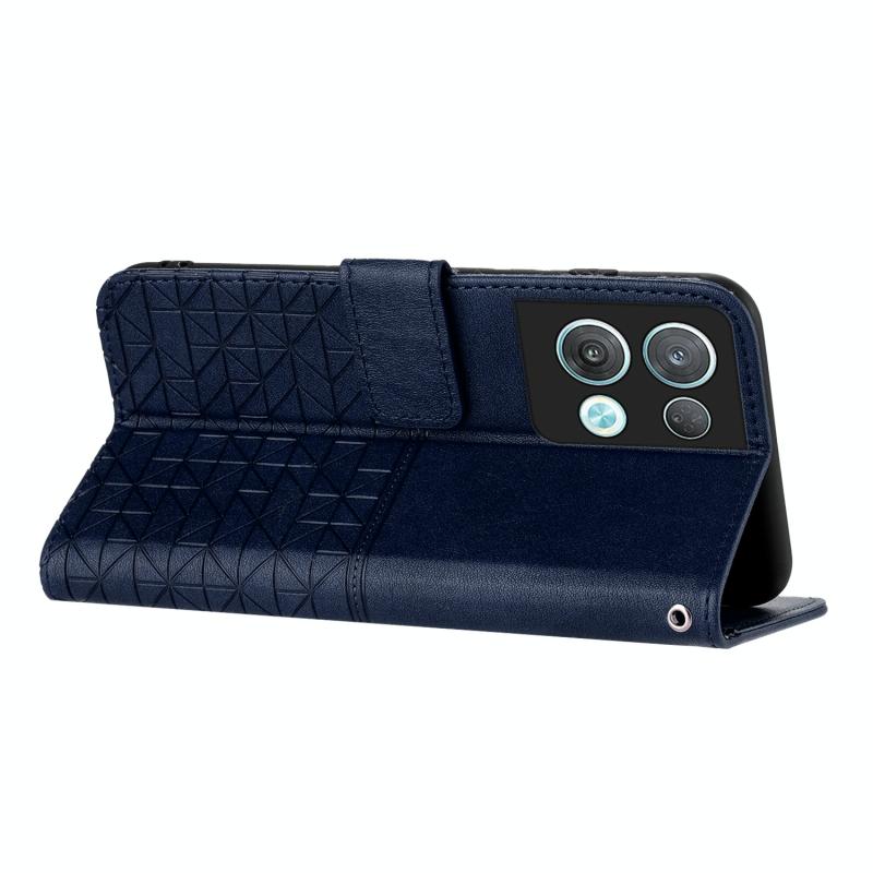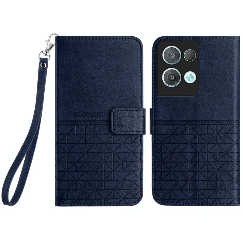 For OPPO Reno8 Pro Rhombic Texture Leather Phone Case with Lanyard(Blue)