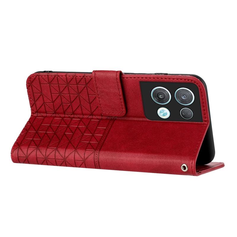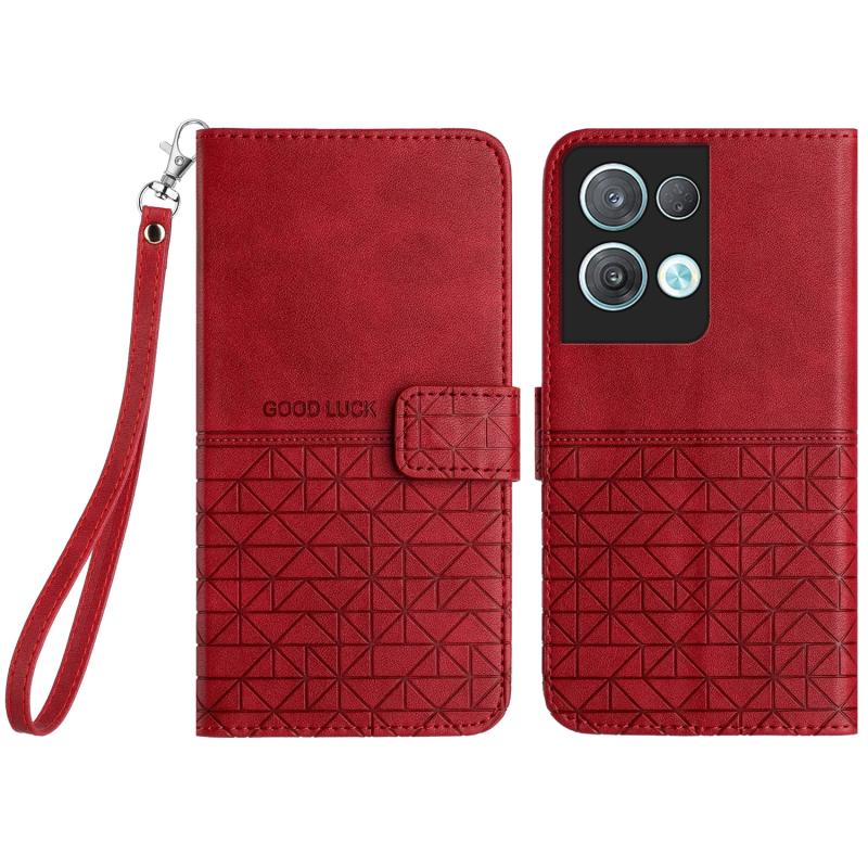For OPPO Reno8 Pro Rhombic Texture Leather Phone Case with Lanyard(Red)
