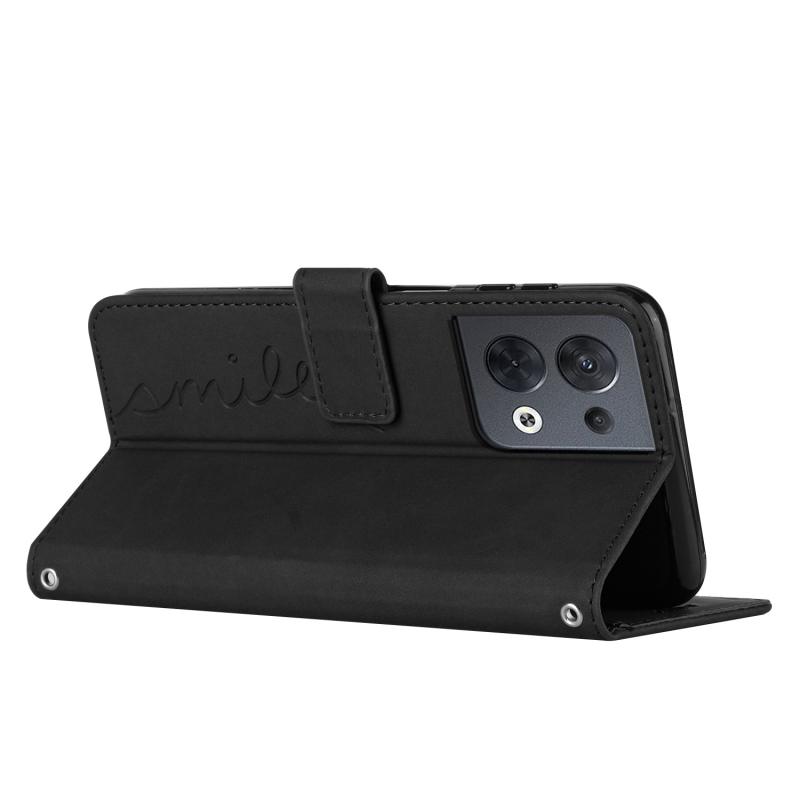 For OPPO Reno8 Skin Feel Heart Pattern Leather Phone Case(Black)