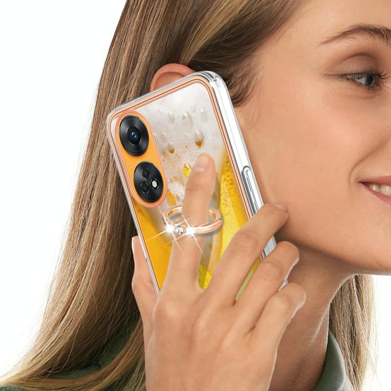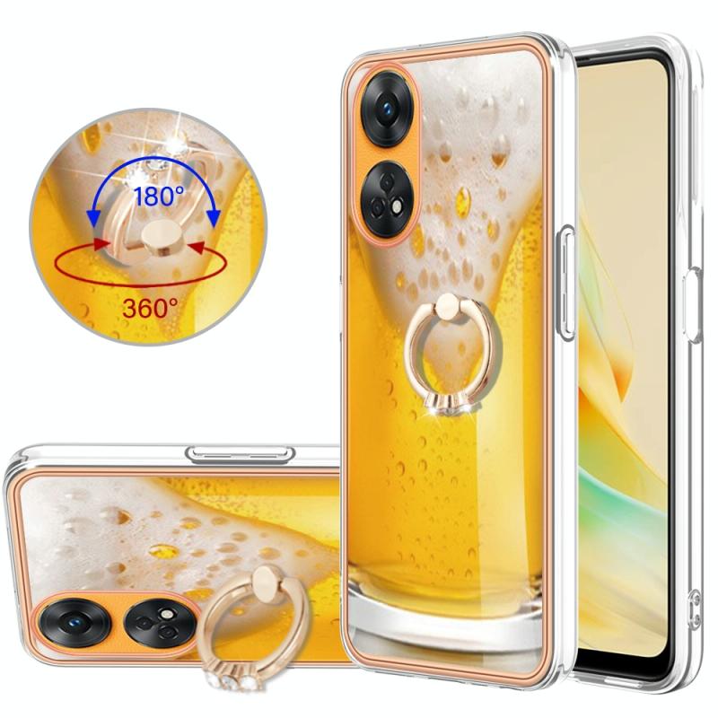 For OPPO Reno8 T 4G Electroplating Dual-side IMD Phone Case with Ring Holder(Draft Beer)