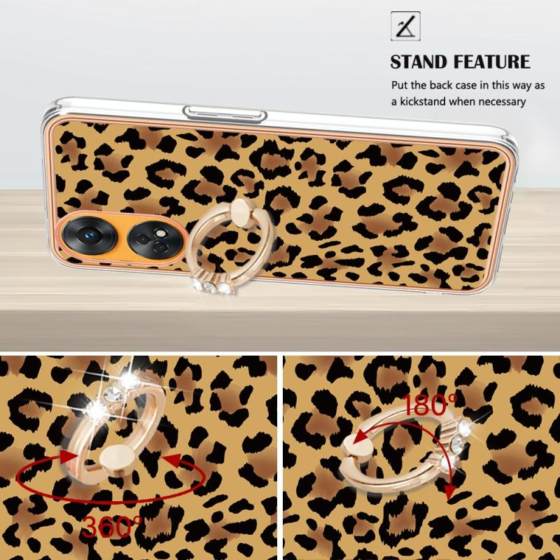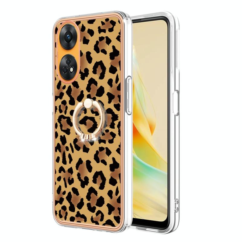 For OPPO Reno8 T 4G Electroplating Dual-side IMD Phone Case with Ring Holder(Leopard Print)