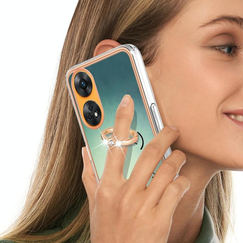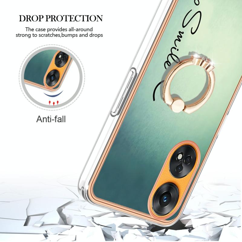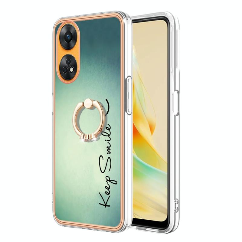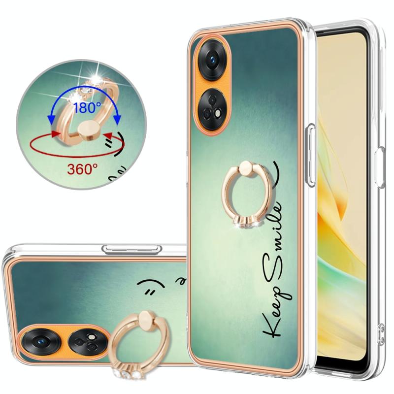 For OPPO Reno8 T 4G Electroplating Dual-side IMD Phone Case with Ring Holder(Smile)