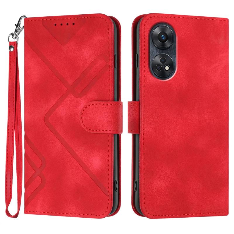 For OPPO Reno8 T 4G Line Pattern Skin Feel Leather Phone Case(Red)