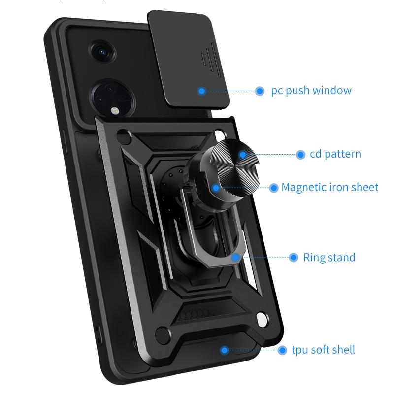For OPPO Reno8 T 5G Sliding Camera Cover Design TPU+PC Phone Case(Silver)