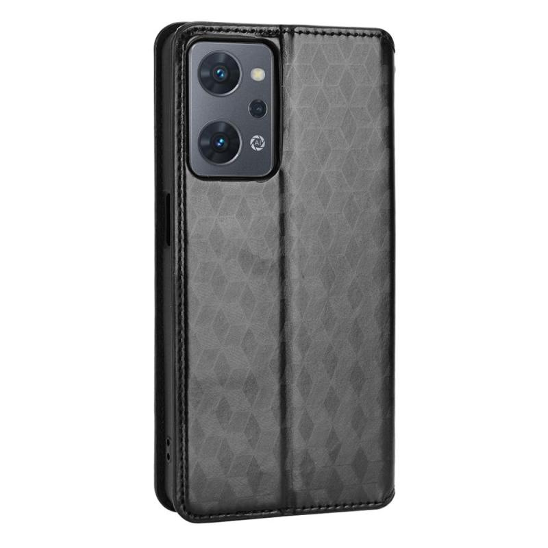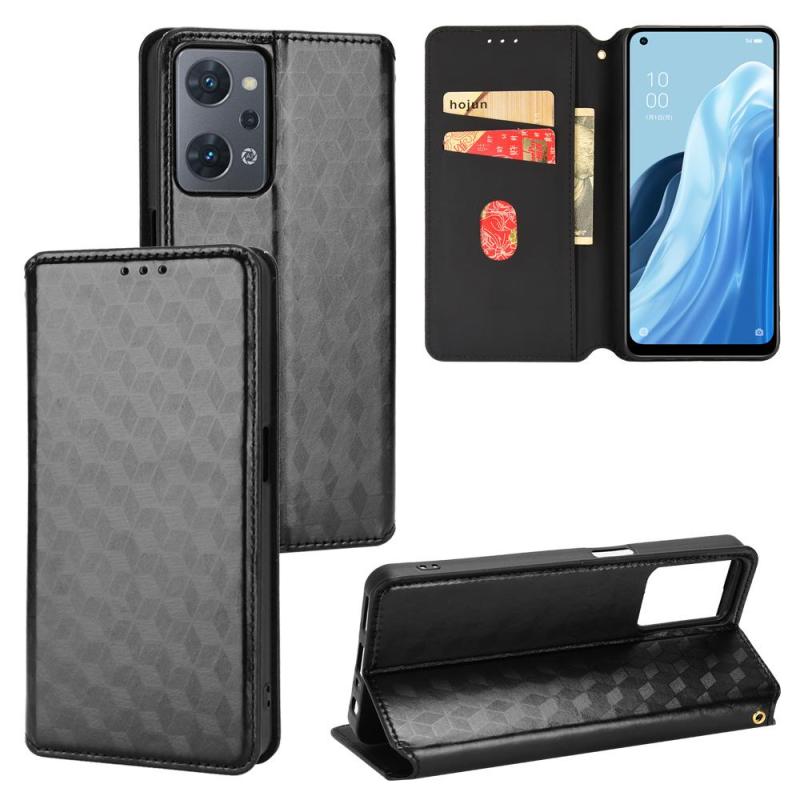 For OPPO Reno9 A Cubic Grid Texture Flip Leather Phone Case(Black)