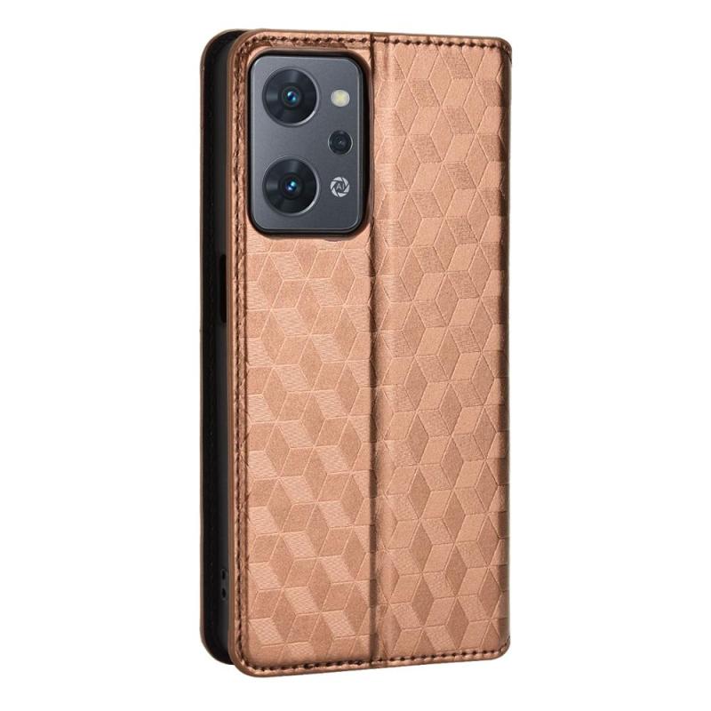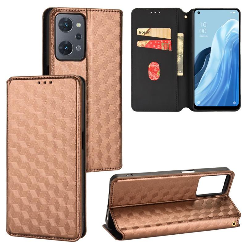 For OPPO Reno9 A Cubic Grid Texture Flip Leather Phone Case(Brown)